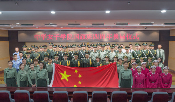 中华女子学院国旗班自2013年3月成立以来,经过一届又一届队员的努力,已经逐渐成为一个体制不断健全、制度逐渐规范的半军事化学生组织。四年来,每一届队员都秉承着爱护国旗、守护国旗的信念,刻苦训练、积极进取,得到了校内外的一致认可,在参加各类队列展示及规范升旗比赛中,多次荣获全国和北京市高校一等奖、最佳团体奖和最佳升旗手等多项荣誉。今后,女院国旗班将继续秉承“巾帼青春,崇旗爱国,绿装红颜,勇往直前”的精神,以巾帼之志,守卫民族之魂,努力为女院校园文化建设树立起一面爱国主义的旗帜。